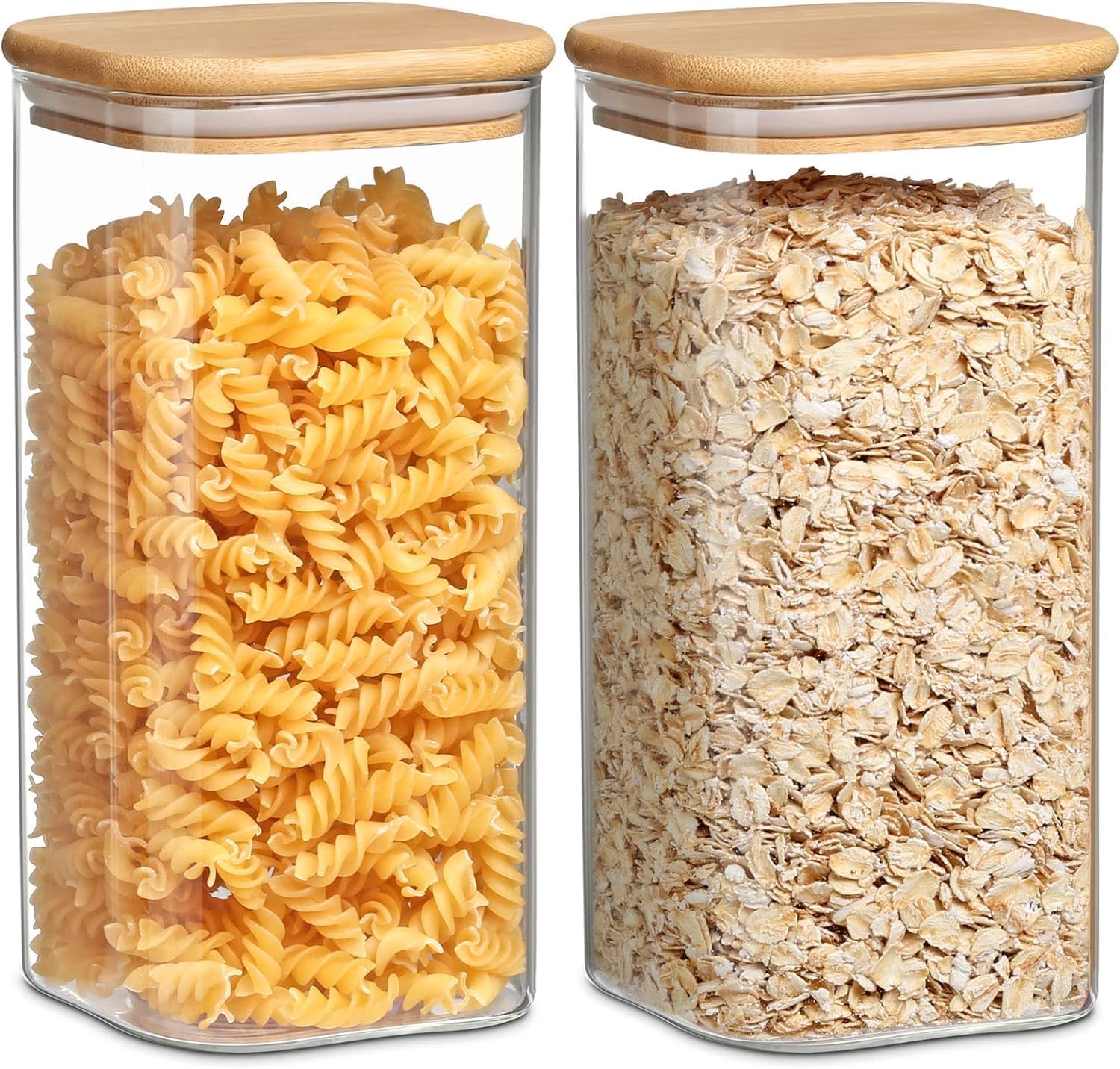 • Tall and Large for Food Storage:tall food storage jar with upgraded is big enough to store spaghetti, pasta, noodles, flour, cereal, tea, coffee, beans, rice etc. Store goodies for foodies and keep your kitchen organized.