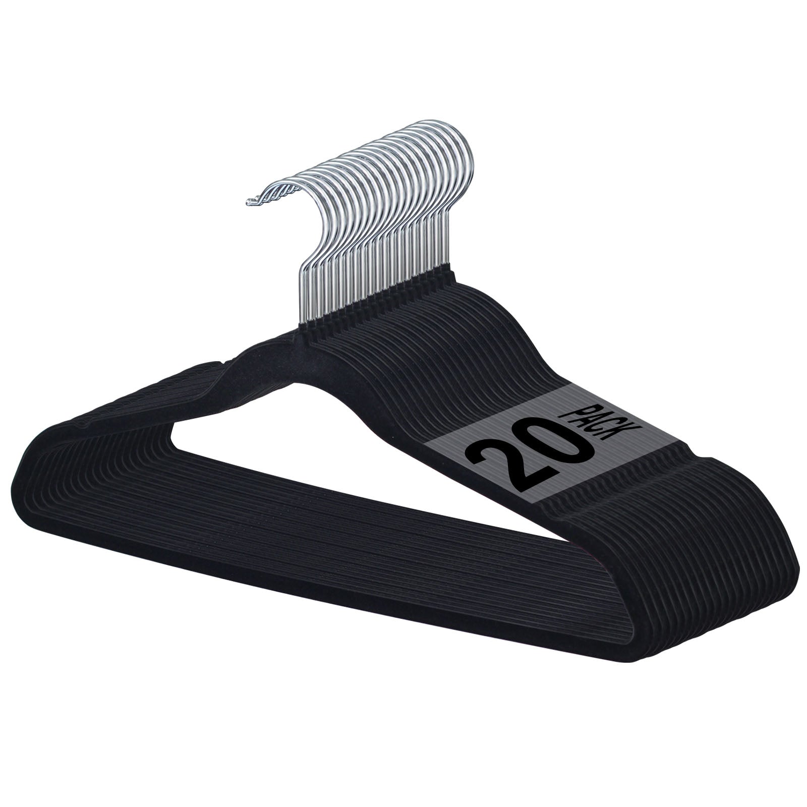 • Non Slip Black Velvet Design, With Chrome Finishing, Ensures Secure Hanging Of Your Clothes With A Slim And Sleek Construction To Maximize Space In Your Closet